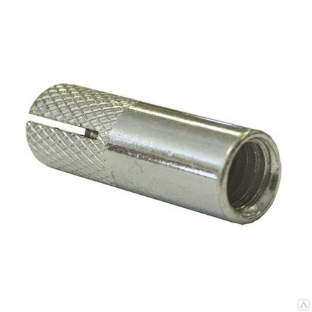 Анкер с внутренней резьбой и конусообразным клином предназначен для крепления материалов и оборудования к бетону, естественному камню, полнотелому кирпичу. Простой и быстрый монтаж — устанавливается в предварительно просверленное отверстие, соответствующее диаметру и длине анкера; расклинивается специальным инструментом. Забивной анкер используется для монтажа резьбовой шпильки или болта с метрической резьбой. Забивной анкер с внутренней резьбой создает точку крепления в потолке, стене или полу.
