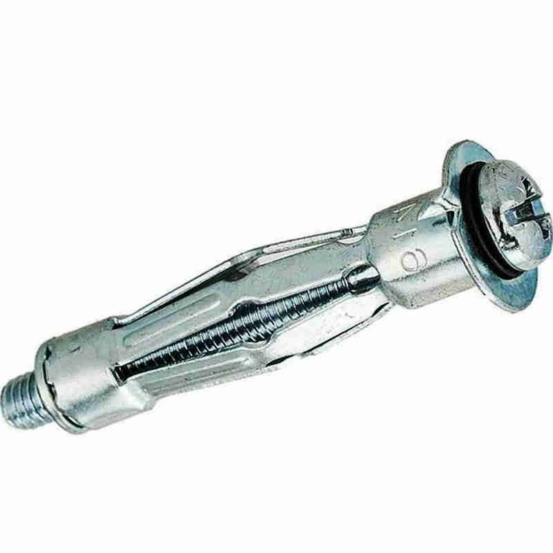 Дюбель металлический применяется в монтажно-отделочных работах для крепления не очень тяжелых элементов декора или мебели. Монтаж может проводиться к потолку или стенам, предварительно обшитых гипсокартонном. Дюбель производится из оцинкованной гальванической стали. Основанием служит винт, на котором находится цанга, так же имеется бортик с зубцами, защищающий от проваливания. Установка дюбеля «Молли» может проводиться как специальными клещами, так и при помощи одного лишь молота и отвертки.