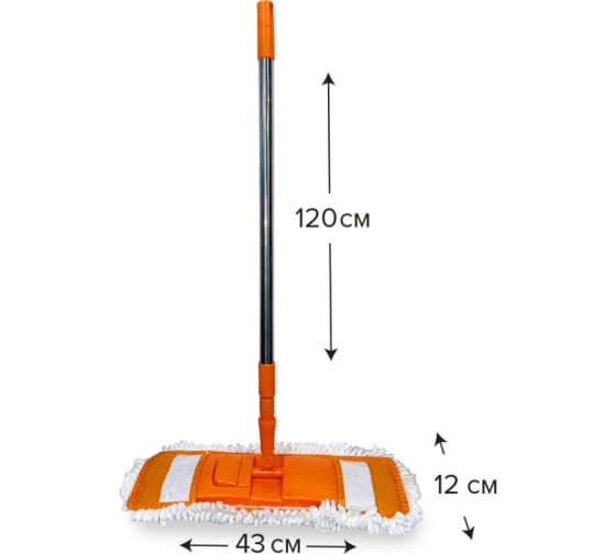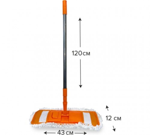 Тип:швабра Наличие ручки:есть Длина ручки:1200 мм Материал рукояти:металл/пластик Длина насадки:430 мм Ширина насадки:120 мм С отжимом:нет